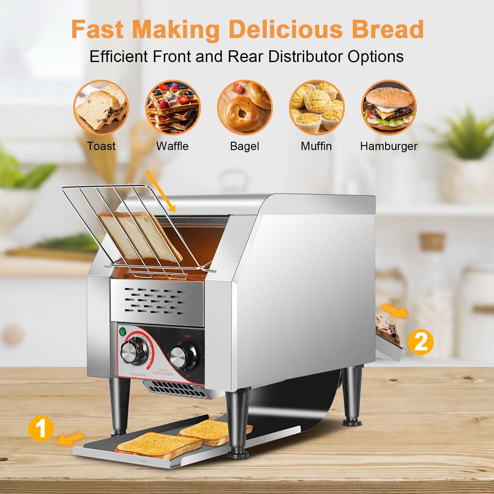 - High-Efficient Toaster: Our commercial conveyor toaster can toast up to 150 slices of bread per hour. Excellent for virtually any commercial and home kitchen, this conveyor toaster is fast, efficient, and easy to use. Able to please your guests with delicious bread and a short wait. Large families can also prepare breakfast quickly.