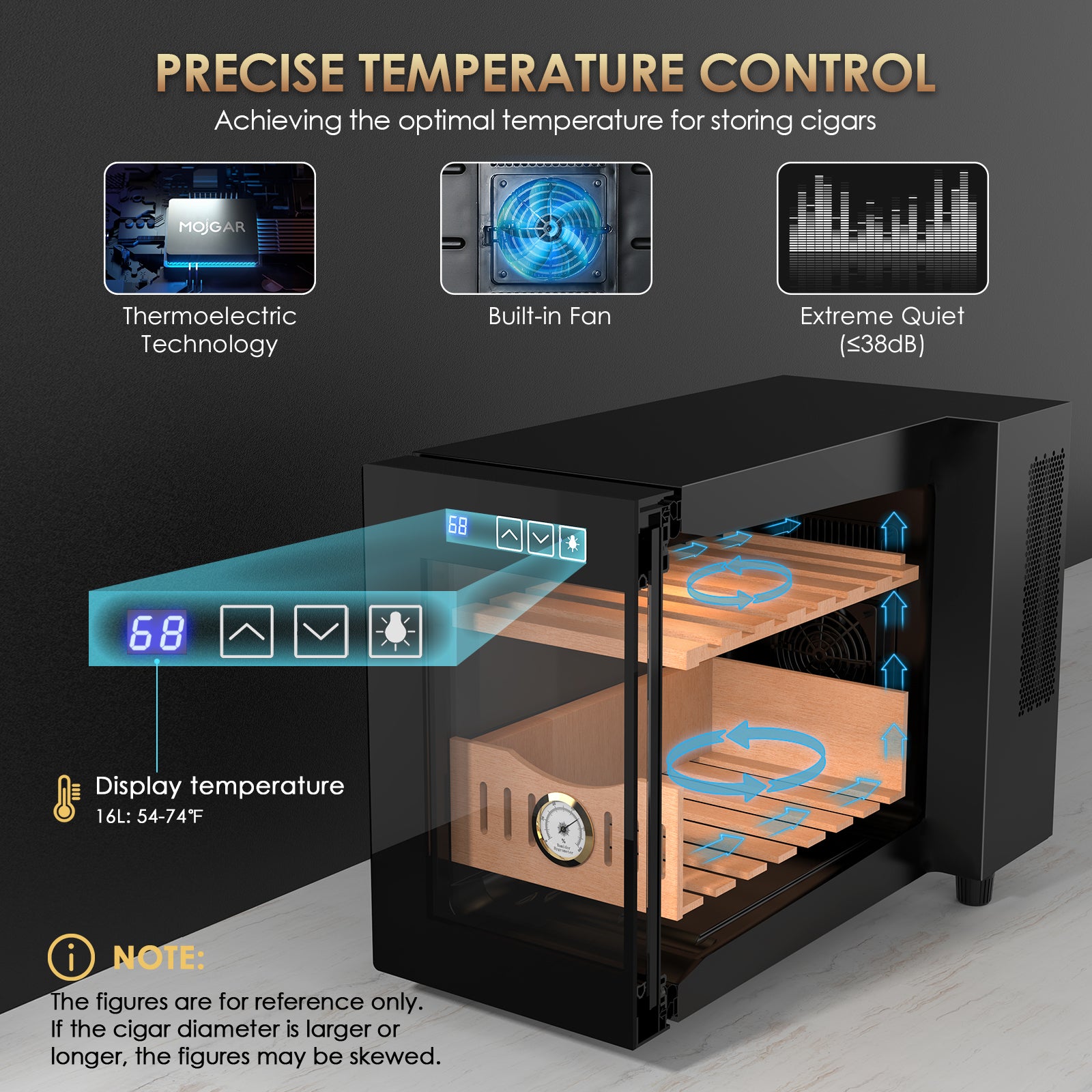 - Electronic Cigar Cabinet Humidor - Temperature range of Cigar Cooler 54 to 74 Fahrenheit, which avoids the influence of the external environment on cabinet temperature and humidity, and provides a more suitable space for long-term storage.