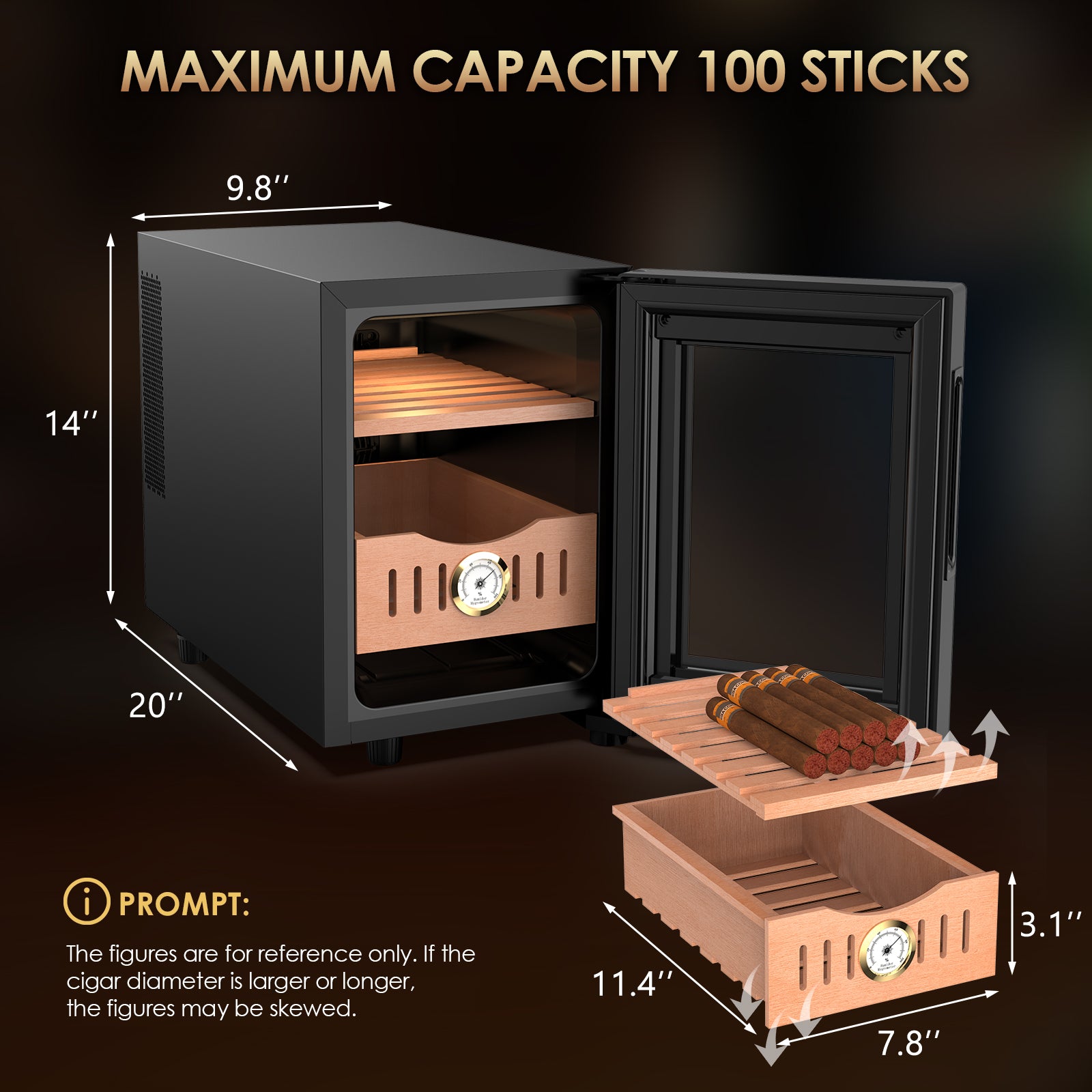 16L Cigar Humidor, Electric Cigar Humidor Cabinet for 100 Counts with Digital Hygrometer, Spanish Cedar Lined Cigar Box, Great Gift for Father Friends Men