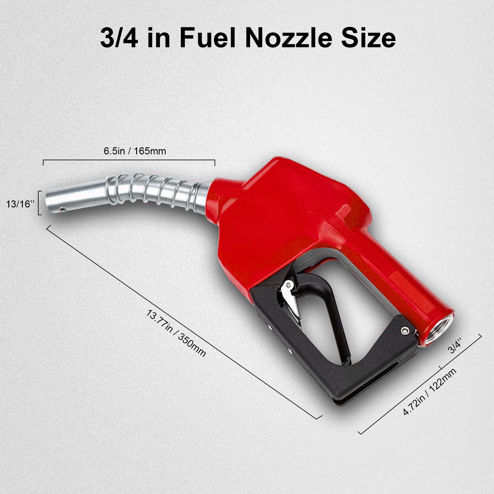 - 3/4" Automatic Multi-Function Fuel Nozzle with Auto Shut-Off Design that Prevents Leaks and Spillage. With a Maximum Flow of 10.5-18.5 GPM (39-70 LPM), this Nozzle Makes Refueling Fast and Speedy. Aluminum Body Resists Rust. The Ergonomic Handle Ensures Your Hands are Not Tired or Strained. Ideal For Transfer of Diesel Fuel, Biodiesel, Kerosene and other Light Fuel Oils.