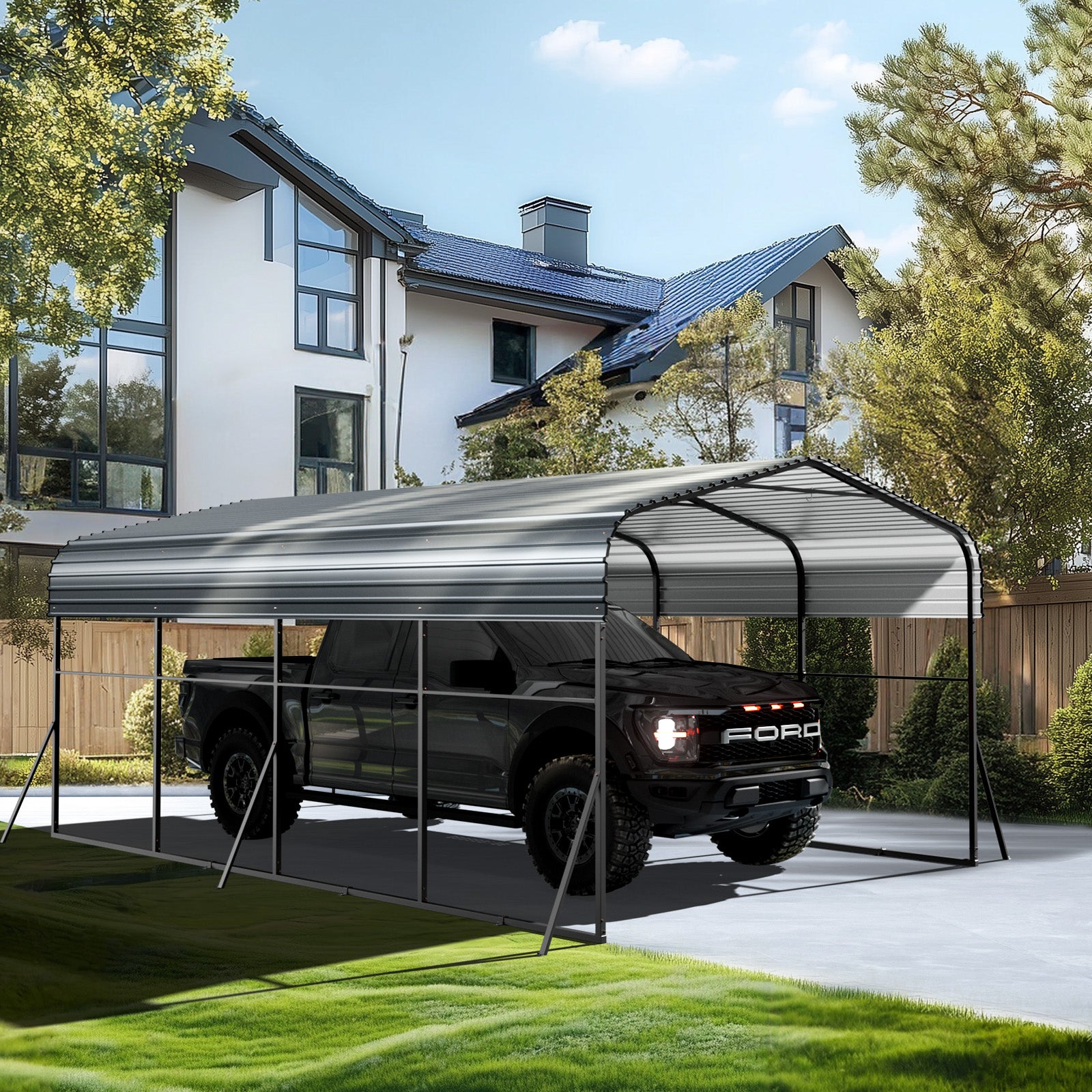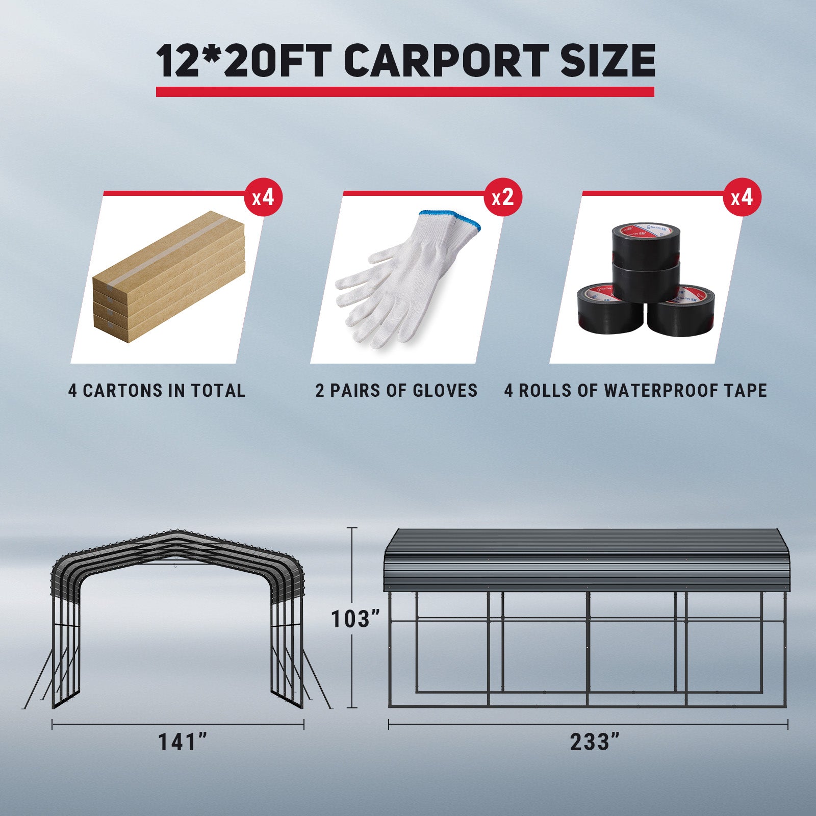 Ecojoy 12' x 20' Outdoor Metal Carport, Heavy Duty Galvanized Steel Carport Canopy