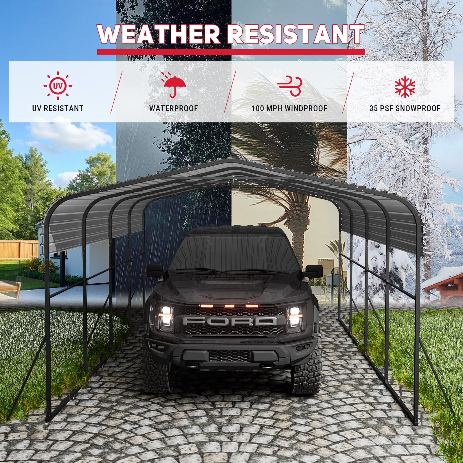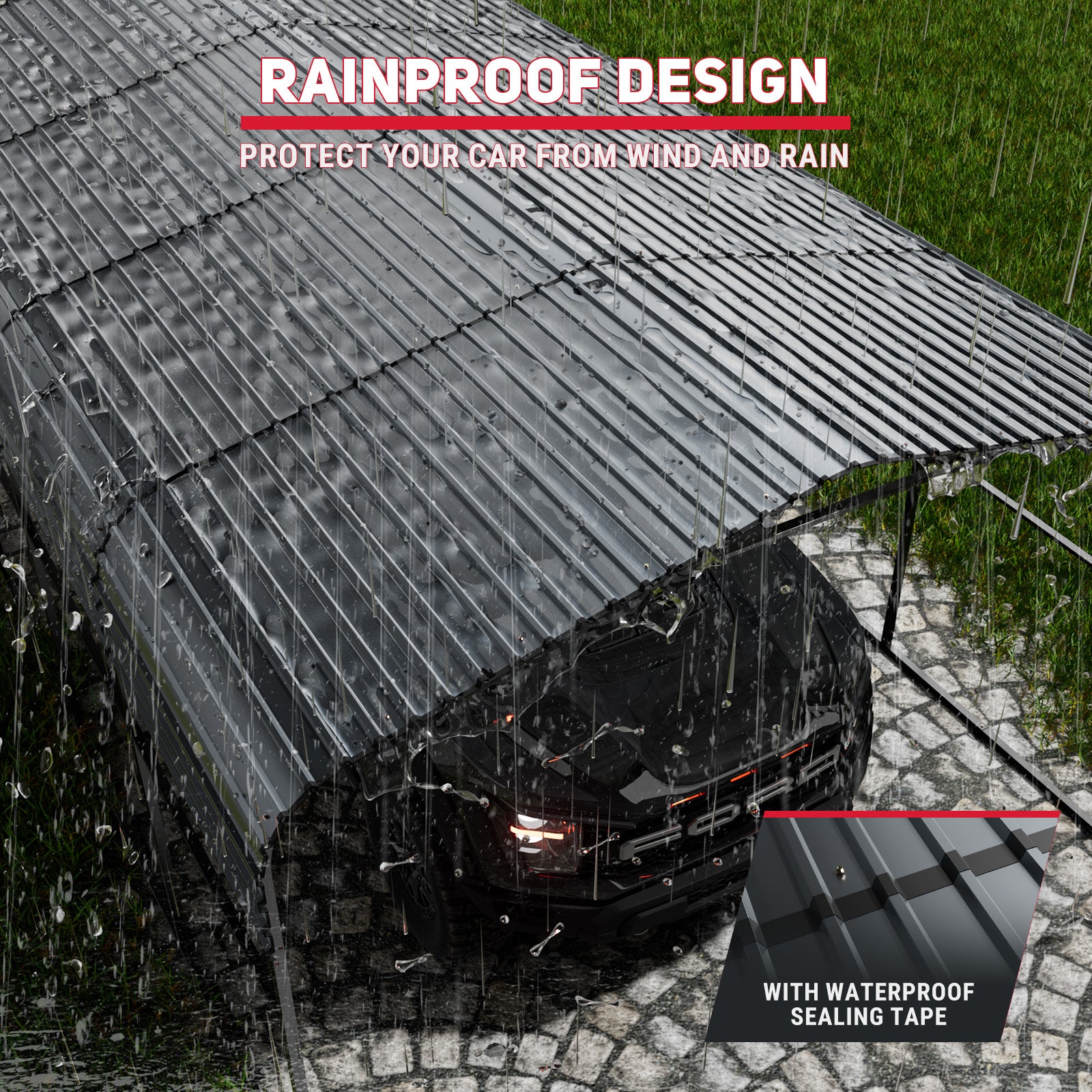 - Leak-Resistant Design: Equipped with high-density weatherstrip tape, this 20' x 12' carport reduces the possibility of rain leakage, keeping your vehicles and equipment dry and protected