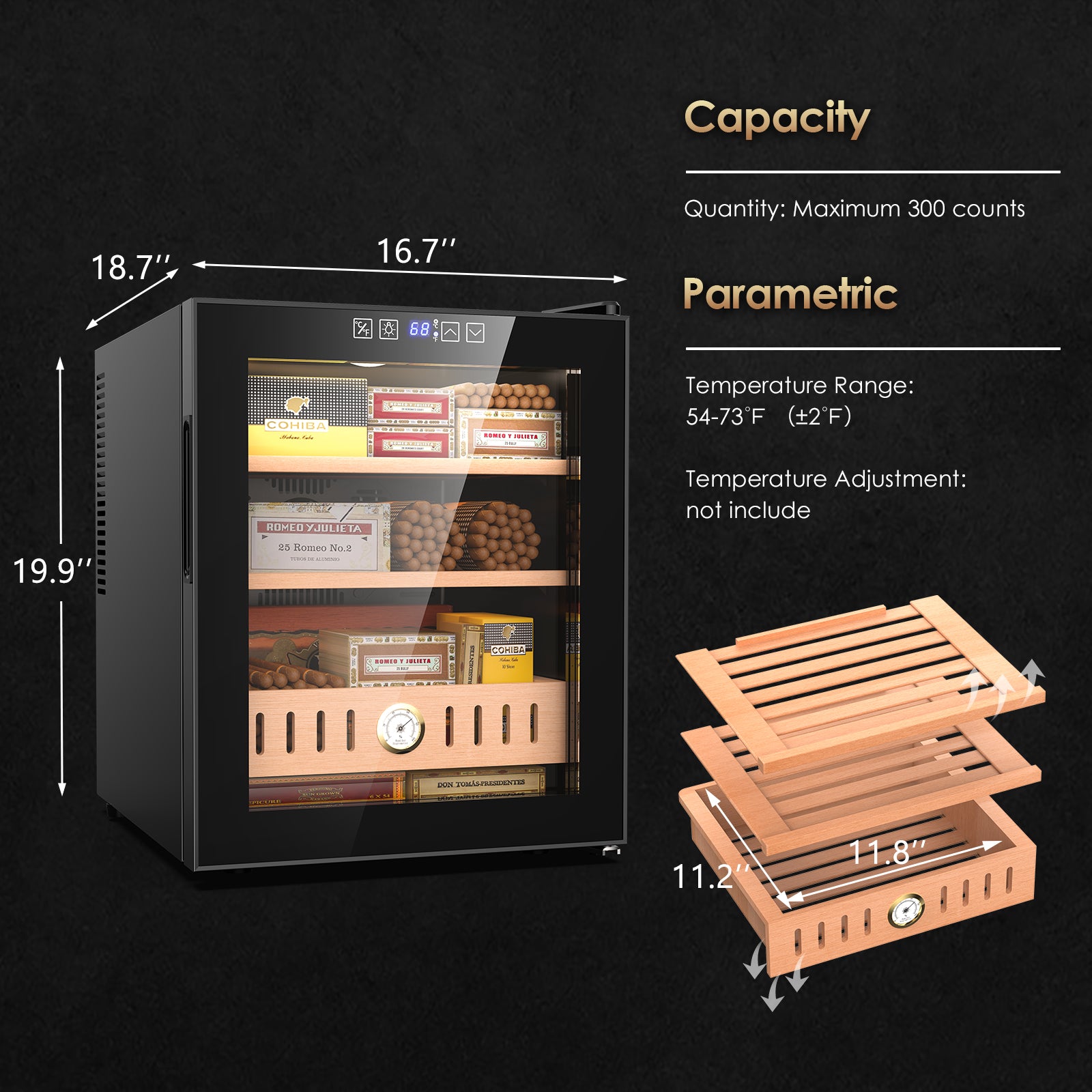 Ecojoy 50L Cigar Humidor Cabinet with Cooling, Spanish Cedar, Hygrometer, 300 Cigars