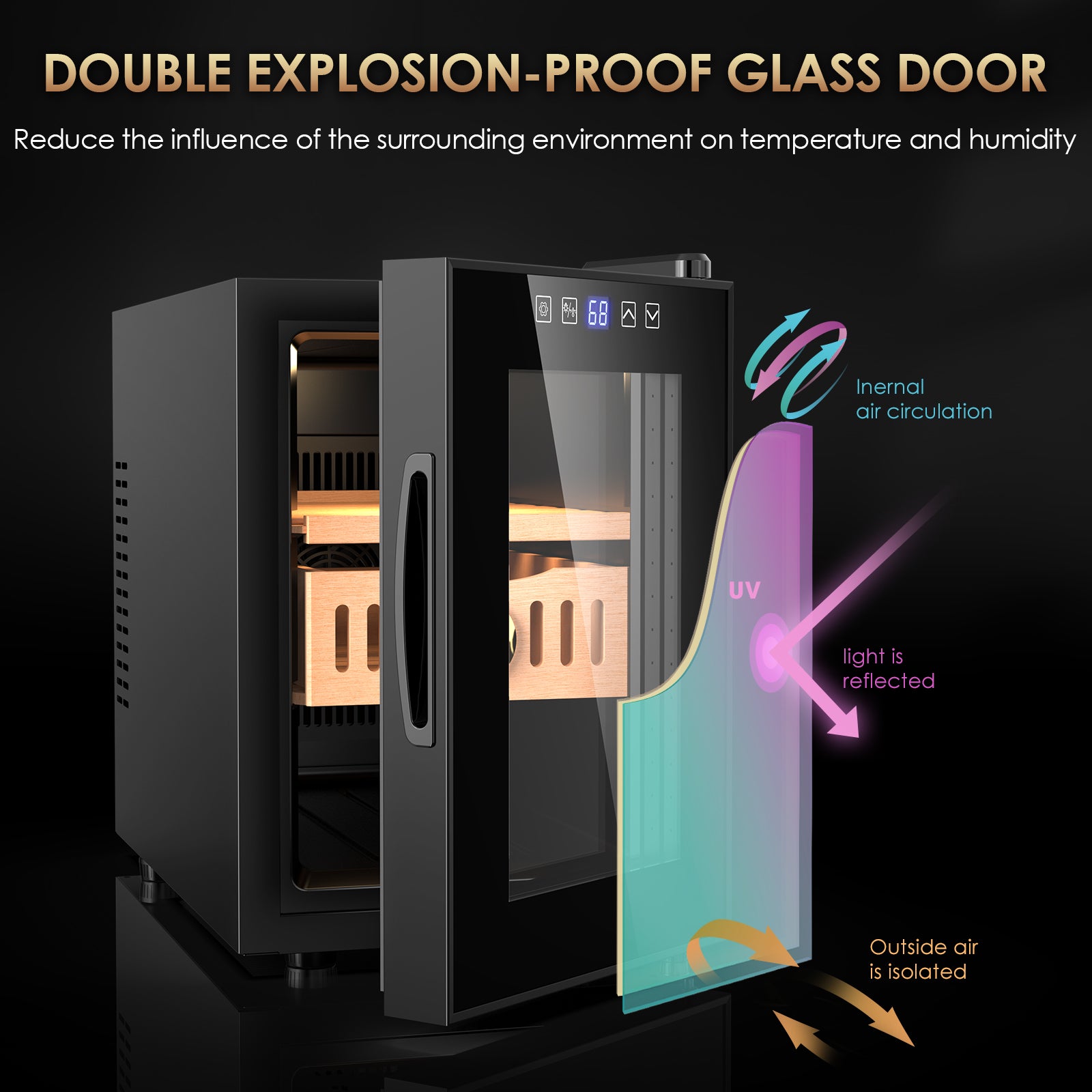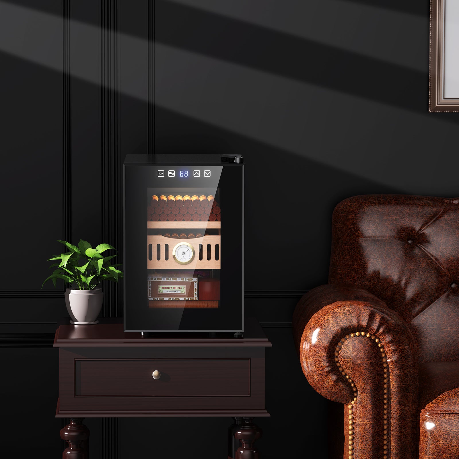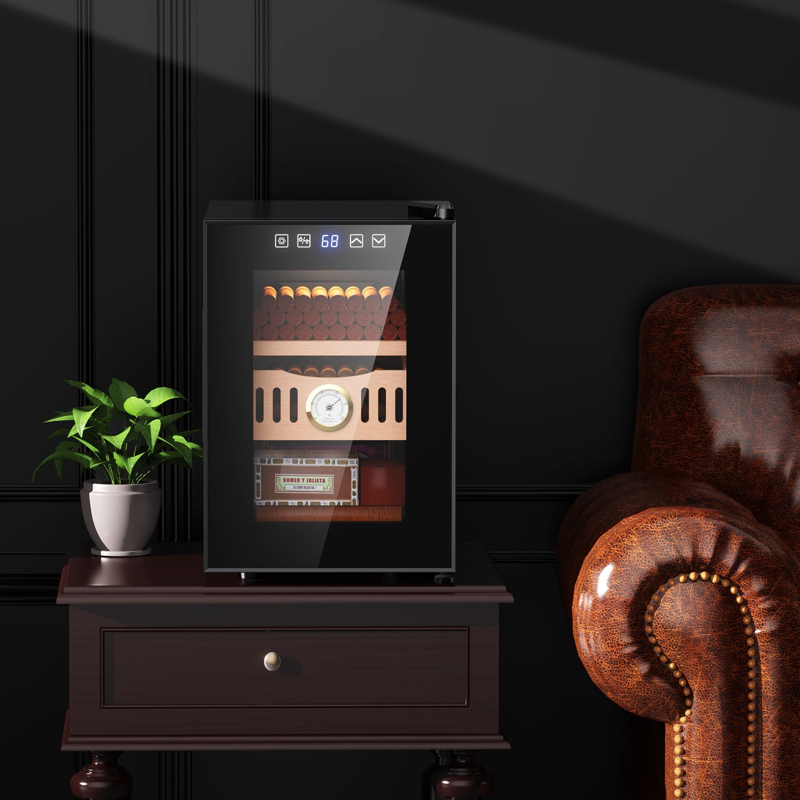 Electric Cigar Humidor, 18L Cigar Humidors Cabinet for 100 Counts with Hygrometer, Heating & Cooling Control, Modern Spanish Cedar Lined Cigar Box