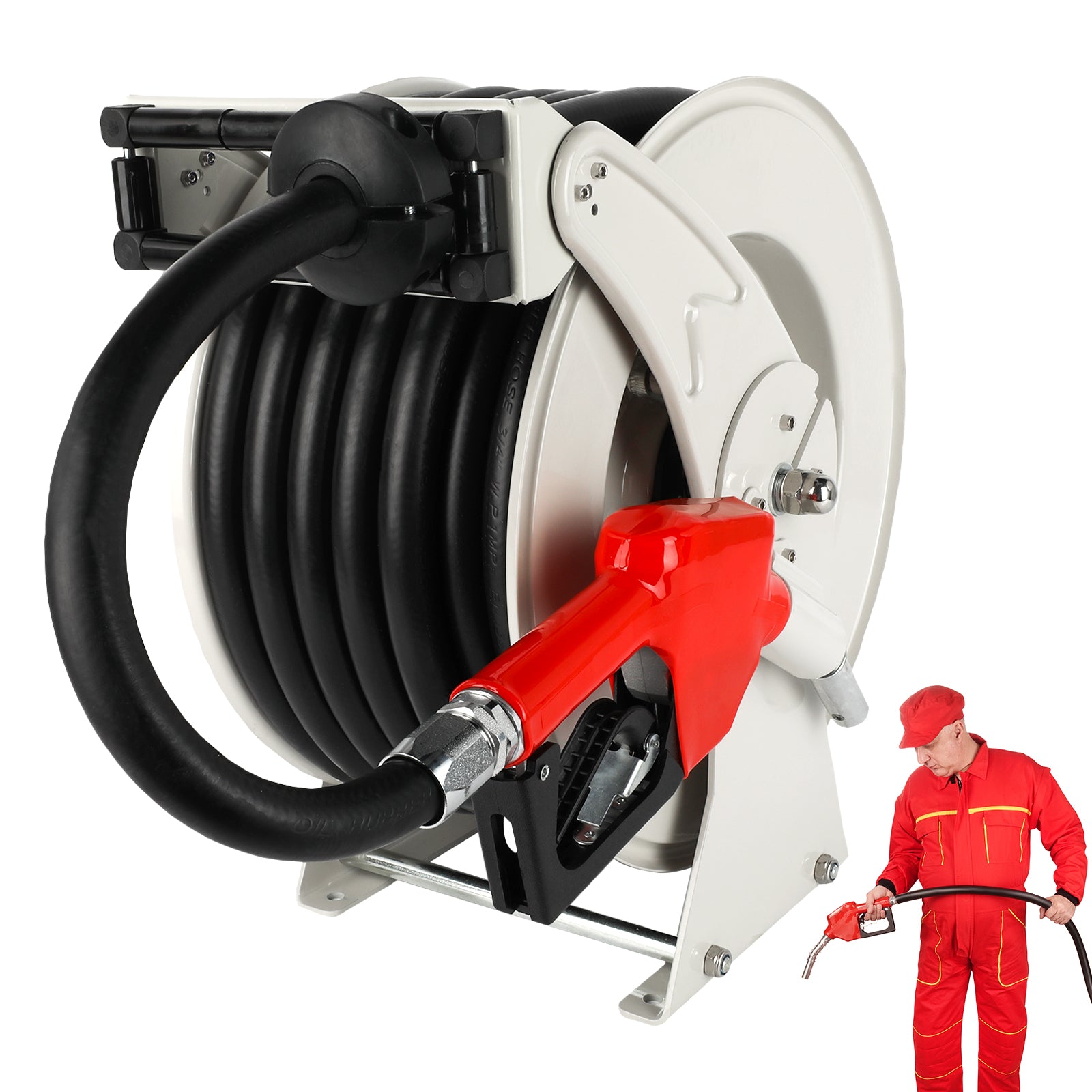 Fuel Hose holder with 66ft Hose: Coming with an industrial-grade rubber hose, strength and bending flexibility, resistance to abrasion, heat, ozone, and can work in the toughest conditions -14°F to 122°F. 66 feet in length, 3/4'' diameter hose gives you extra length to work with. Also, rated to a maximum pressure of 300 PSI, capable of delivering fast flows & precision volumes of fuel, diesel or kerosene, etc.