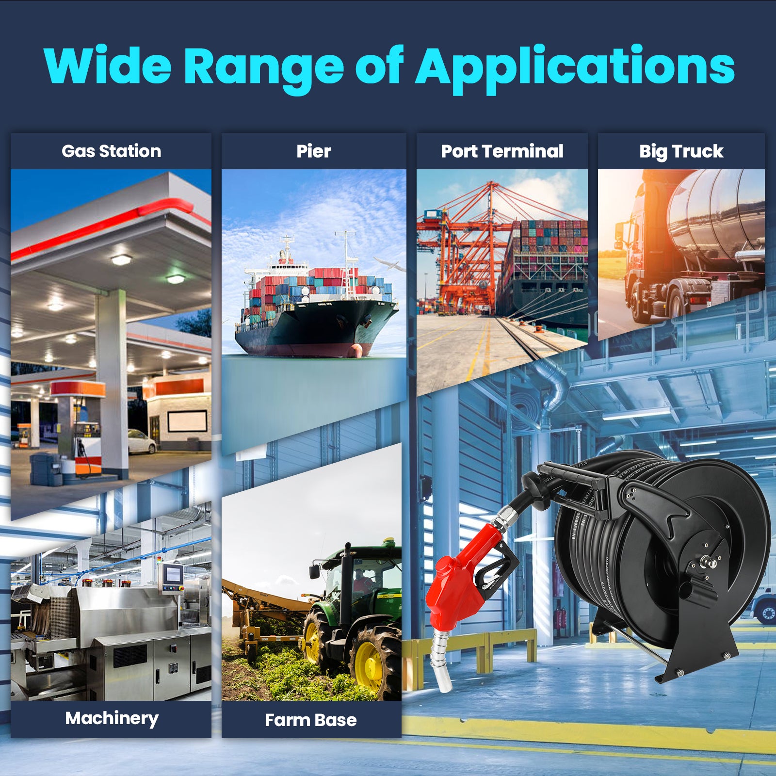 Easy Maintenance: All seals are made from Solid Brass(CuZn40Pb2) for compatibility with diesel fuel, ensuring smooth, uninterrupted fluid flow without fuel leaking. Including a 360° rotating connection seals to prevent the hose from twisting when refueling, and ensure that the fuel nozzle is not moving and not easy to leak. The reel is well-suited to all industries including Agriculture, Industrial, Mining and Transportation, great for onsite refueling.